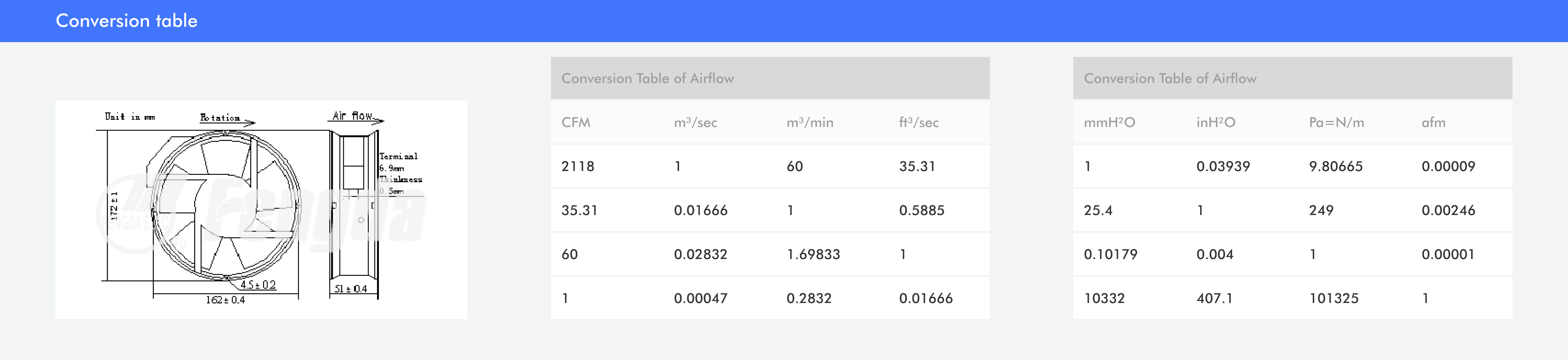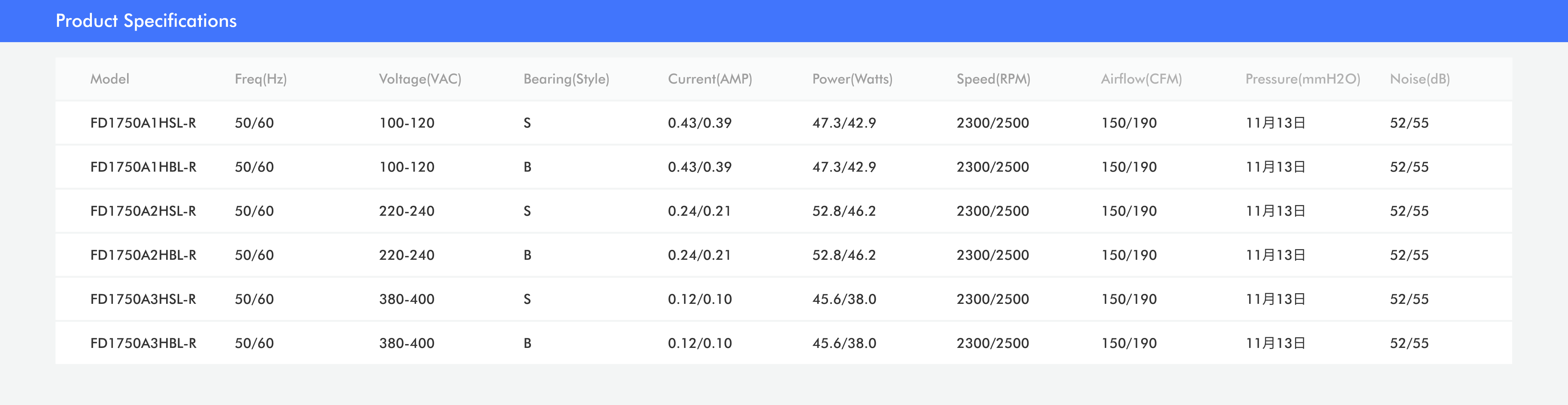 - Life at 25°C: Ball bearing 60,000 hours, Sleeve bearing 30,000 hours