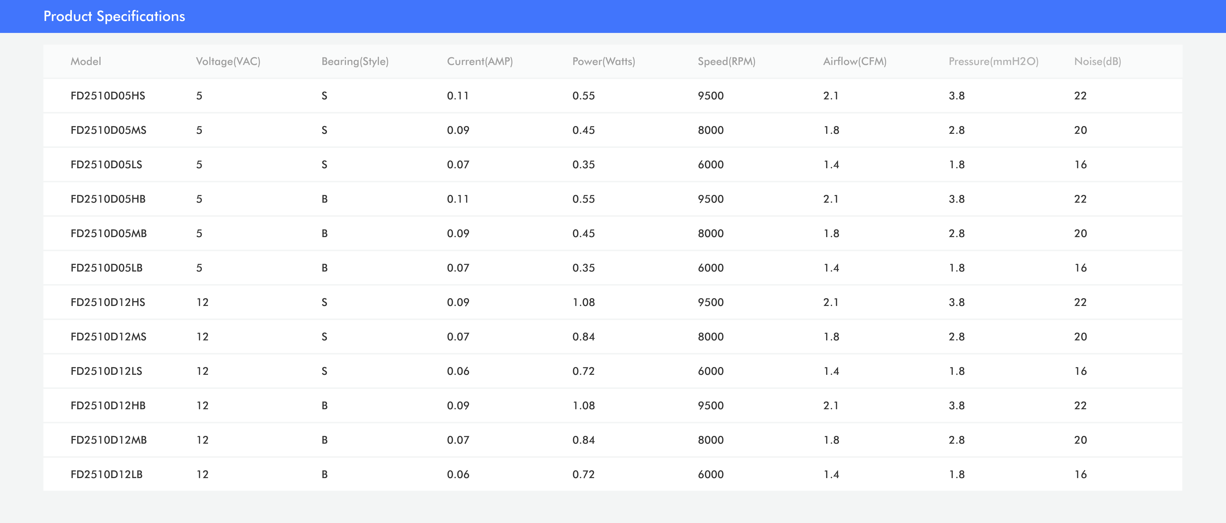 - S: Sleeve bearing B: Ball bearing